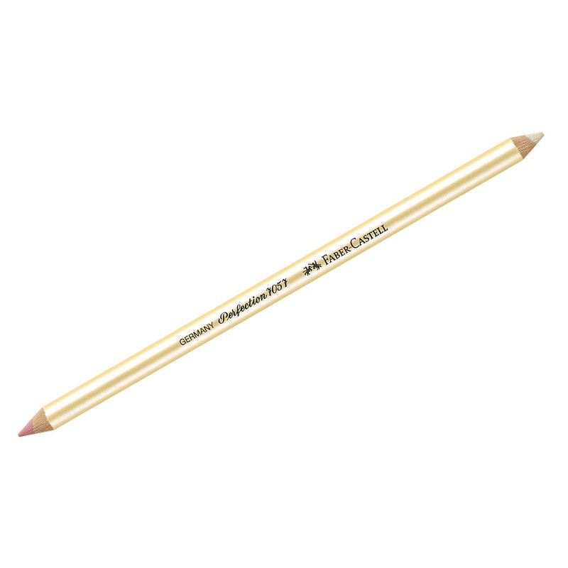 Ластик-карандаш Faber-Castell "Perfection 7057" предназначен для удаления линий чернографитного карандаша и шариковой ручки. Двусторонний ластик - розовый, мягкий и твердый белый. Мягкий розовый ластик предназначения для стирания линий, сделанных чернографитными карандашами. Твердый белый ластик предназначен для стирания линий, сделанных чернилами, шариковой или капиллярной ручкой. Не содержит ПВХ и вредного фталатного пластификатора, благодаря чему безопасен для использования.