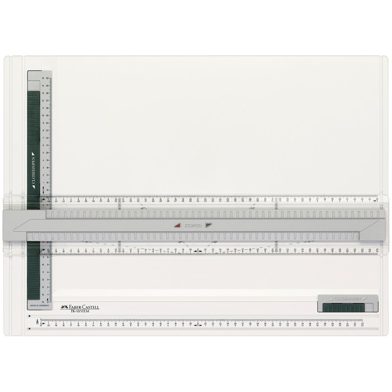 Чертежный планшет Faber-Castell "TK-System", формат А3. Планшет (доска для черчения) произведен из ударопрочного пластика, который нельзя испортить иглой циркуля. Надежные зажимы могут удерживать несколько листов бумаги.